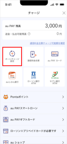 [オートチャージ設定]をタップします。
