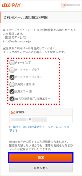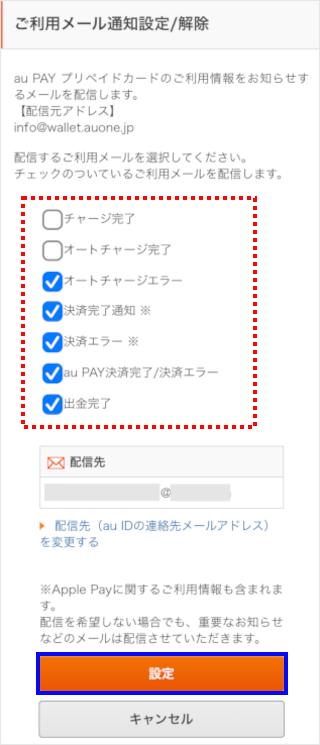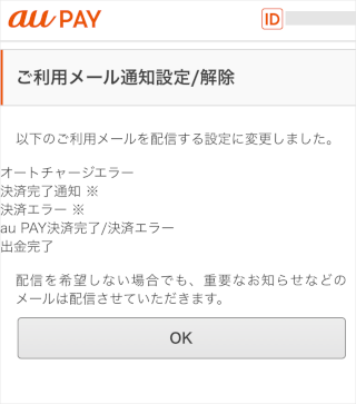 【au PAY(auかんたん決済)】利用確認メールの配信を停止したい