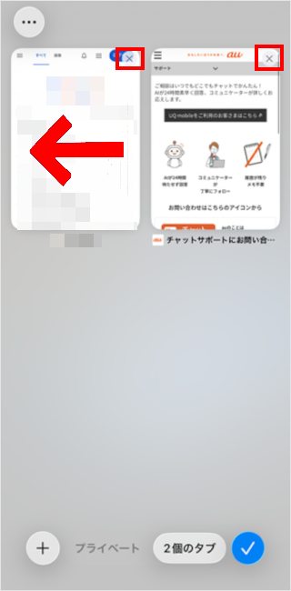 不要なタブの[×]をタップまたは、タブを左へスライドします。 以上で操作は完了です。