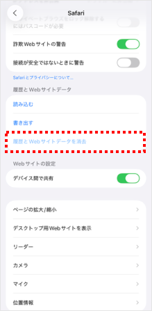 ブラウザ(Safariアプリ)のキャッシュ/Cookieは、設定アプリで削除できます。