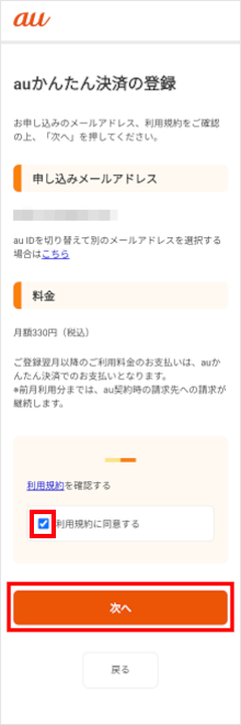 「利用規約に同意する」にチェックを入れ、[次へ]をタップします。