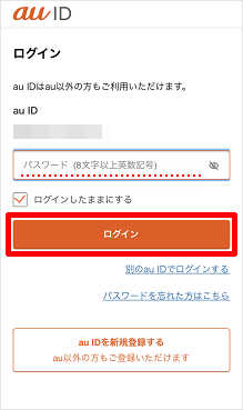 My au利用規約、My UQ mobile利用規約、ID利用規約、au Ponta ポイントプログラム規約およびアクセスデータの利用に同意の上、ログインしてください。