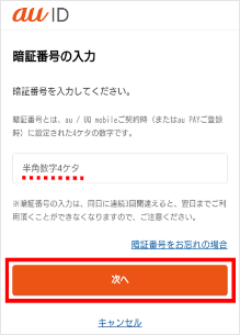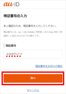 ご契約時に決めた4桁の「暗証番号」を入力し、[次へ]をタップします。