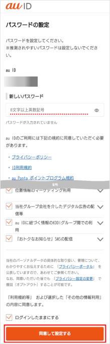My au(アプリ)でau IDやパスワードの新規登録ができます。