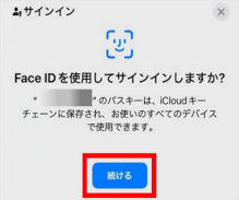 生体認証を行うため、[続ける]をタップします。