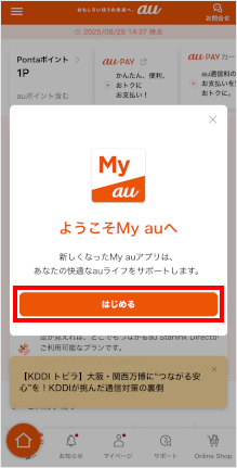 操作方法のチュートリアル(アニメーション)が表示され、My au(アプリ)のトップ画面が表示されます。 以上で、au IDの新規登録は完了です。