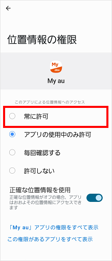 [常に許可]をタップします。 ※この画面が表示されない場合は次の手順に進みます。