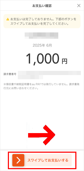 内容を確認して、[スワイプしてお支払いする]をスワイプします。