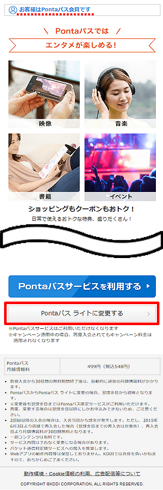 画面を最下部までスクロールし、[Pontaパス ライトに変更する]をタップします。