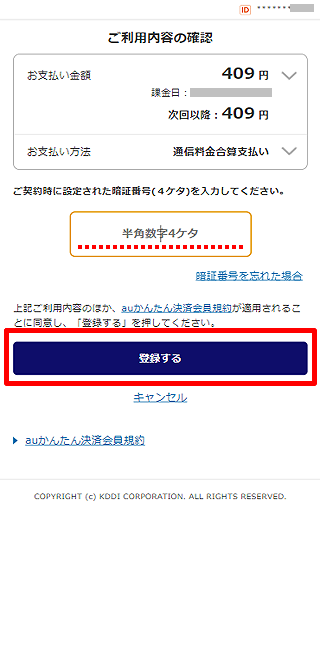 ※au ID、パスワードでログインしてください。