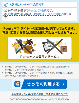 以上で、「Pontaパス」から「Pontaパス ライト」への変更手続きは完了です。