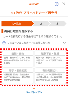 「au PAY サイト」のカード再発行ページで申し込みできます。