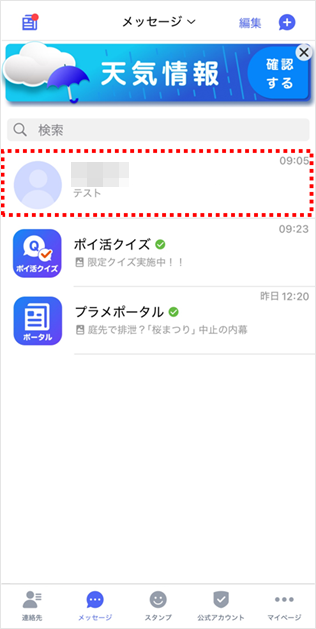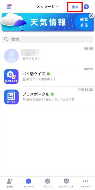 相手の宛先とメッセージは、「+メッセージ(プラスメッセージ)アプリ」でまとめて削除できます。