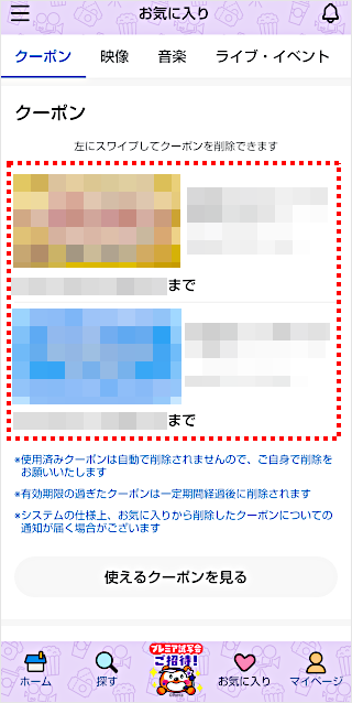 お気に入りに追加したクーポンが表示されます。