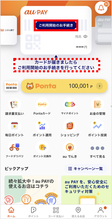 [ご利用開始のお手続き]もしくは[カードが届きましたら利用開始のお手続きを行ってください] をタップします。 ※この手順では[ご利用開始のお手続き]をタップします。