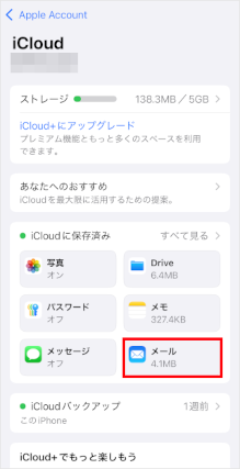 [< iCloud]をタップします。(メールボックスのトップ画面に戻ります)