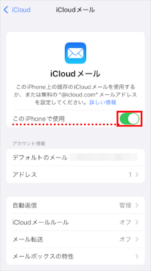 ※icloud.comのメールアドレスを使いたい場合は、こちらをもう一度タップしてオンにします。 以上で操作は完了です。