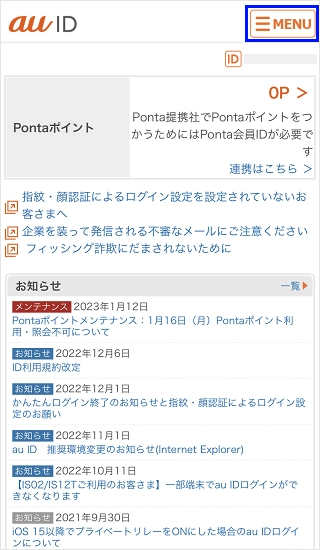 [au ID会員情報]をタップします。