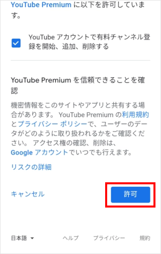 注意事項を確認の上、[許可]をタップします。