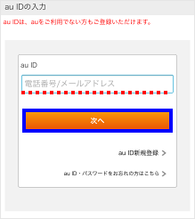 「au IDサイト」にアクセスし、「継続して利用するau ID」でログインします。