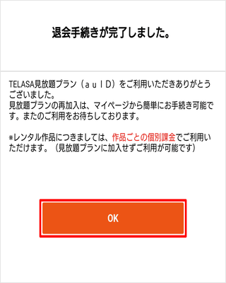 以上で、TELASA(旧ビデオパス)の「見放題プラン」退会は完了です。