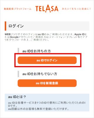 [au IDでログイン]をタップし、au IDとパスワードでログインします。