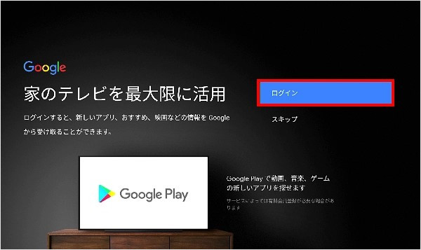 「ログイン」を選択し、リモコンの[決定]ボタンを押します。