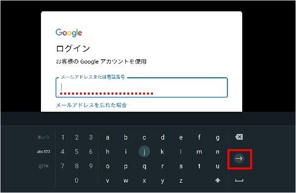 入力完了後、「→」を選択し、リモコンの[決定]ボタンを押します。
