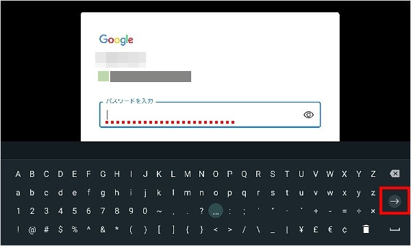 入力完了後、「→」を選択し、リモコンの[決定]ボタンを押します。