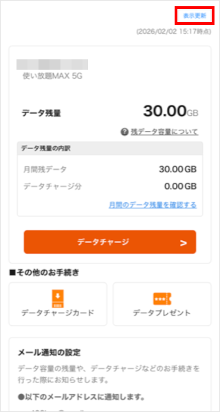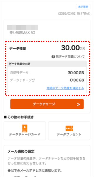 データチャージサイトで確認することができます。 確認する手順は以下をご確認ください。