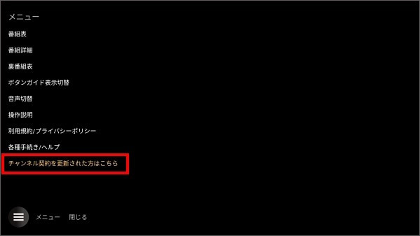 [チャンネル契約を更新された方はこちら]を選択し、チャンネル契約の内容の反映処理を行ってください。