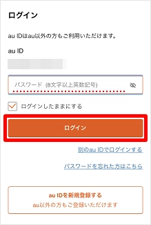 auメール持ち運びを契約している「au ID」を入力し、[次へ]をタップします。