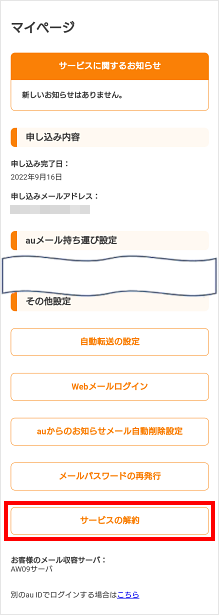 ※解約するauメールアドレスがau IDの連絡先メールアドレス2に登録されている場合、解約手続きを進めることができません。