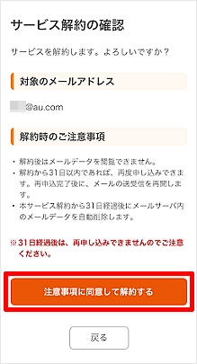 注意事項を確認し、[注意事項に同意して解約する]をタップします。