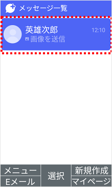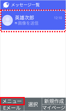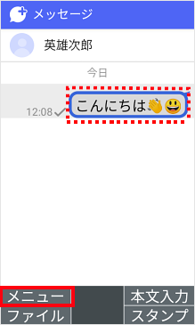 削除したいメッセージの「吹き出し」を選択し、[メニュー(電話帳キー)]を押します。 ※選択されているメッセージは枠が青色になります。