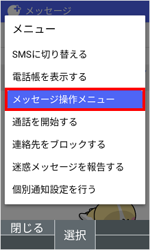 「メッセージ操作メニュー」を選択し、[選択(センターキー)]を押します。