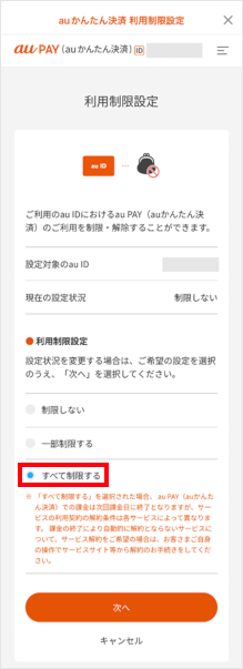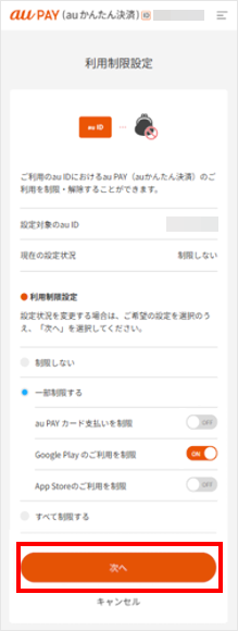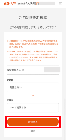 【au PAY(auかんたん決済)】利用制限の解除方法を教えてください