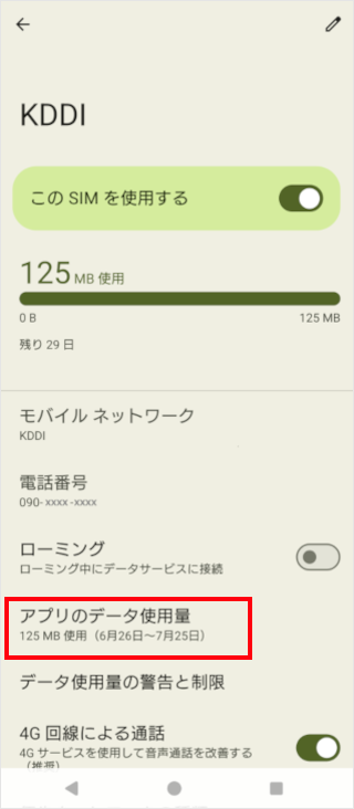 スマートフォン本体が計測したアプリごとのデータ使用量は、端末の「設定」で確認することができます。