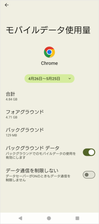 消費内容の詳細やバックグラウンドのデータ使用の変更などができます。