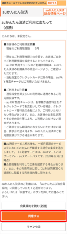 auメール持ち運びの申込後、お客さま情報を登録することで、au PAY(auかんたん決済)での支払いを設定できます。