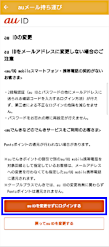 [au IDを変更せずにログインする]をタップします。