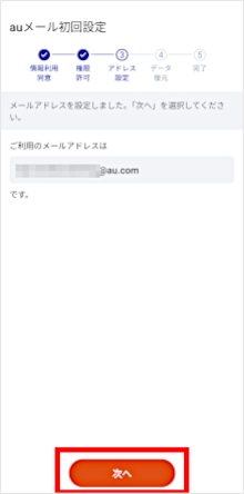 「auメールアプリ」のトップ画面へ戻ります。 以上で設定は完了です。