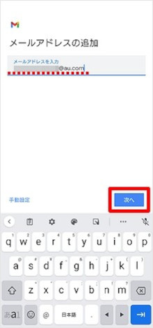 手順2でメモしたメールアドレスを入力し、[次へ]をタップします。
