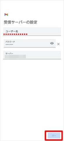 [次へ]をタップします。 ※SMTPサーバーは自動で入力されます。