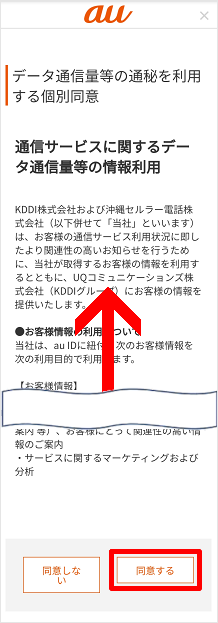 My au利用規約、My UQ mobile利用規約、ID利用規約、au Ponta ポイントプログラム規約およびアクセスデータの利用に同意の上、ログインしてください。