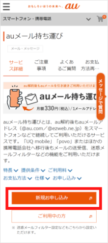 「auメール持ち運び」のWebページでお申し込みいただけます。