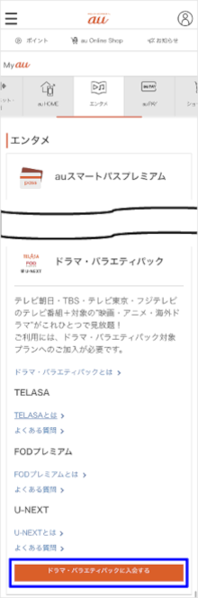 「ドラマ・バラエティパック」の[ドラマ・バラエティパックに入会する]をタップします。