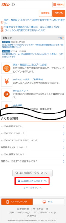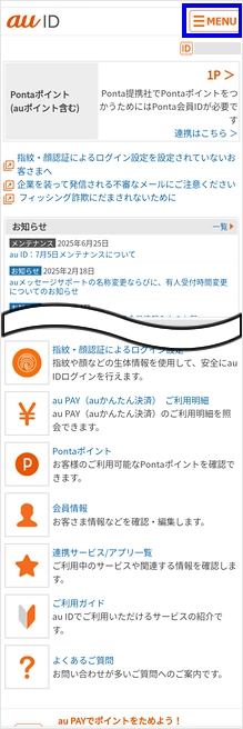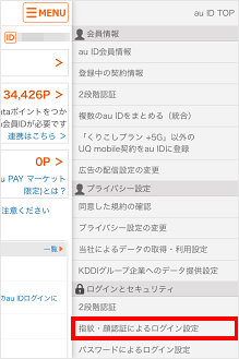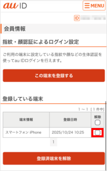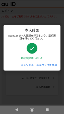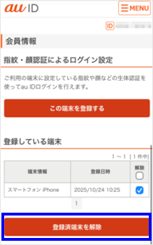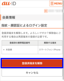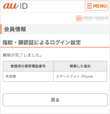 au ID会員情報サイトで生体認証ログイン設定を解除できます。