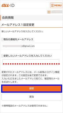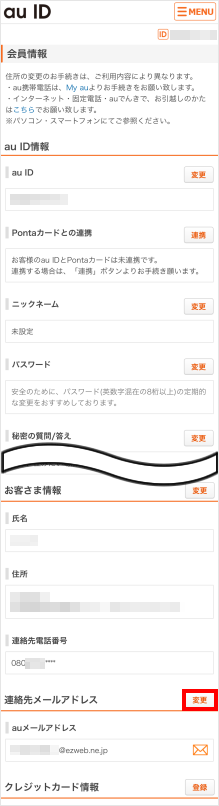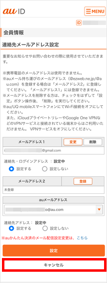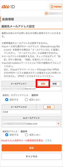 au ID会員情報サイトで、連絡先メールアドレスを変更できます。