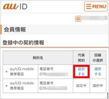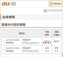 複数契約でau IDを統合している場合、au ID会員サイトで代表契約を変更できます。